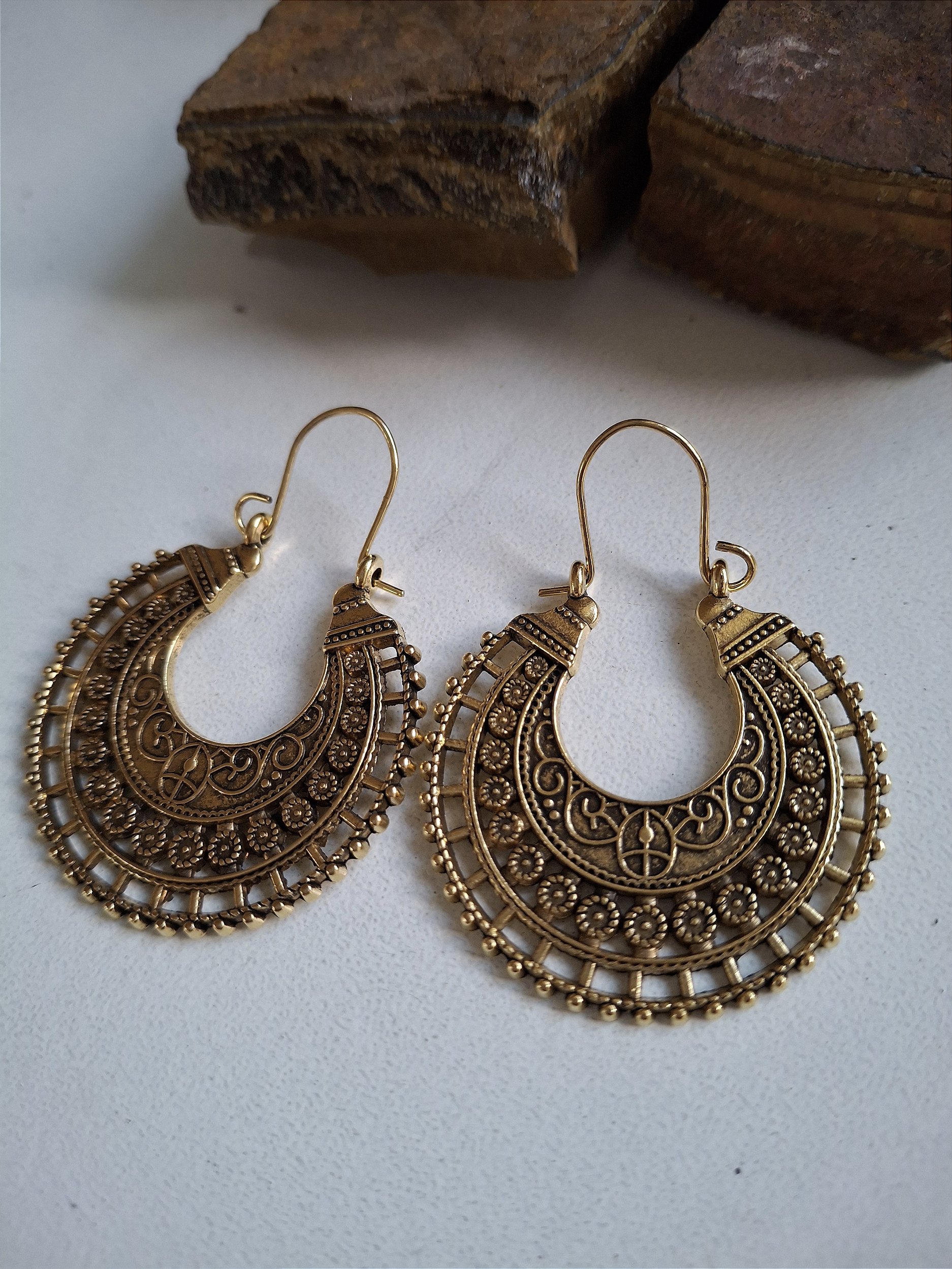 Estilo boho, possui 3.6cmx4.8cm na cor dourado. Material: liga de zinco
