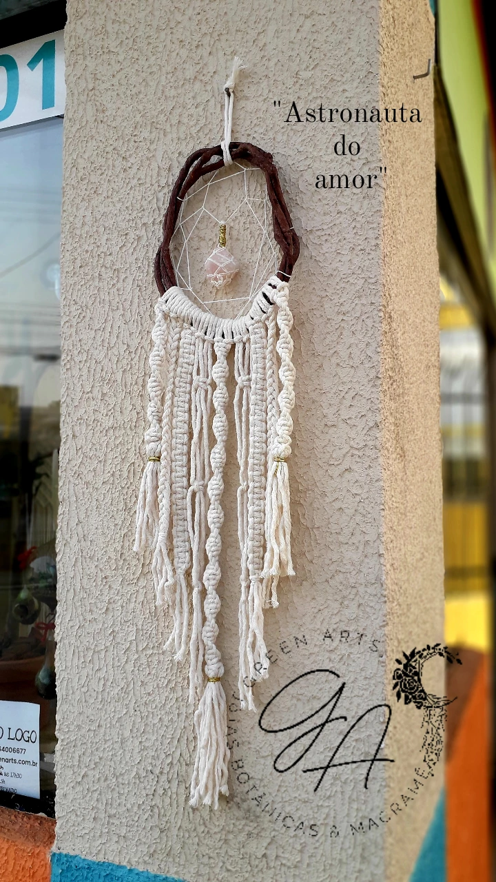 Filtro dos sonhos elaborado com o cristal de quartzo rosa.